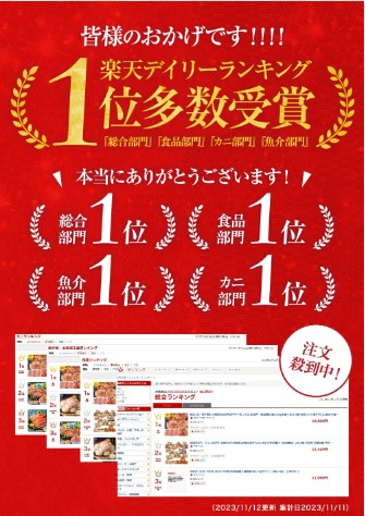 楽天ランキング総合部門第1位 食品部門第1位 魚介部門第1位 カニ部門第1位