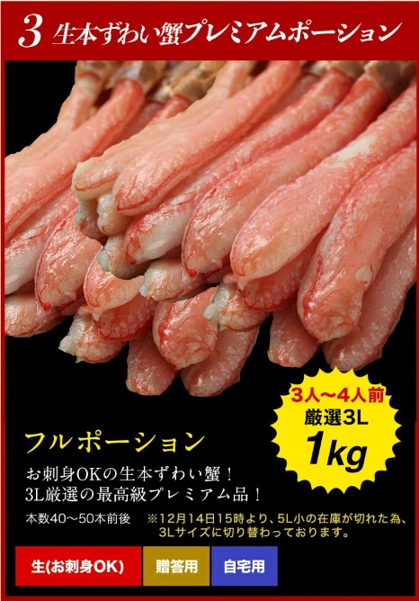 最大3キロ極上のズワイガニが11,500円(税込送料込み)