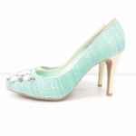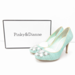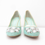送料購入者様負担ですがコメントで送料相当の値引きします。 極美品ほぼ新品同様のピンキーアンドダイアンのグリーン系のビジュー ミュールパンプスです♪